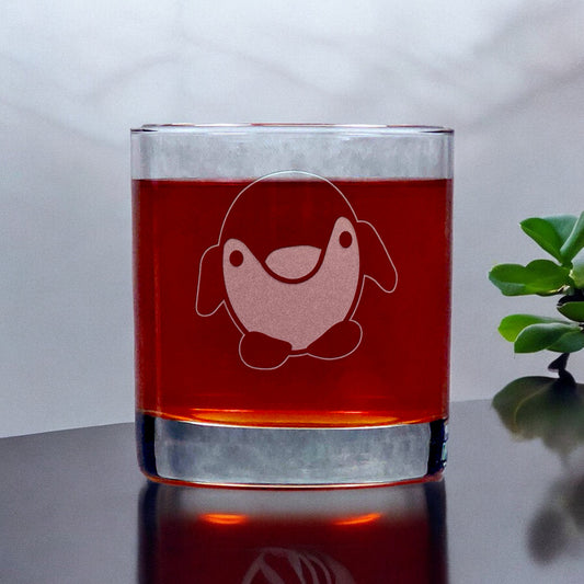 Cute Penguin Engraved 11oz Whiskey Glass - Design 1 - Penguin Lovers Gift