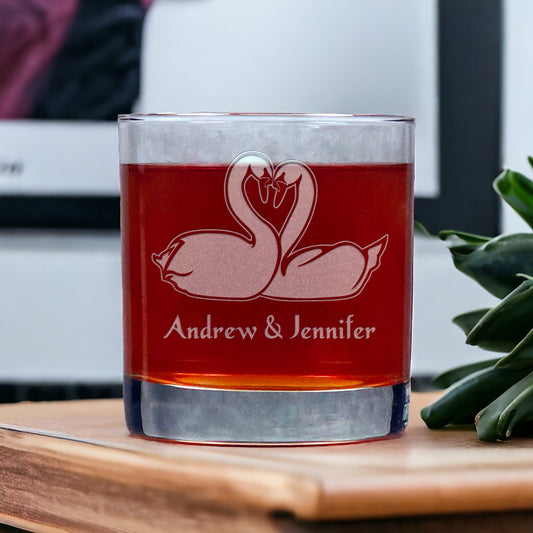 Swans Silhouette Engraved 11oz Whiskey Glass - Free Personalization