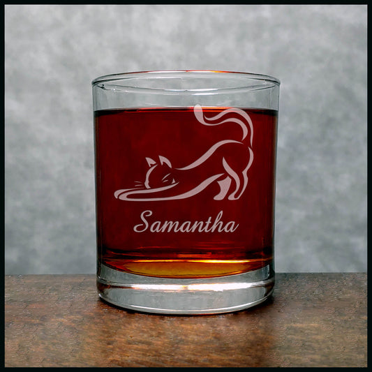 Stretching Cat Engraved 11oz Whiskey Glass - Free Personalization