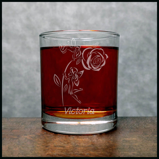 Fairies and Rose Engraved 11oz Whiskey Glass