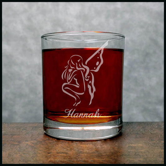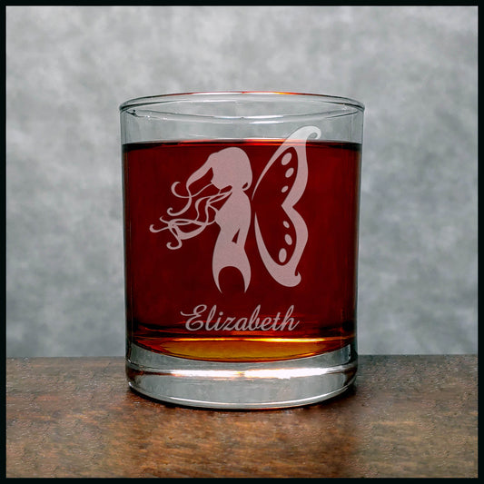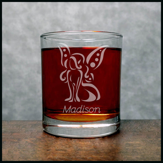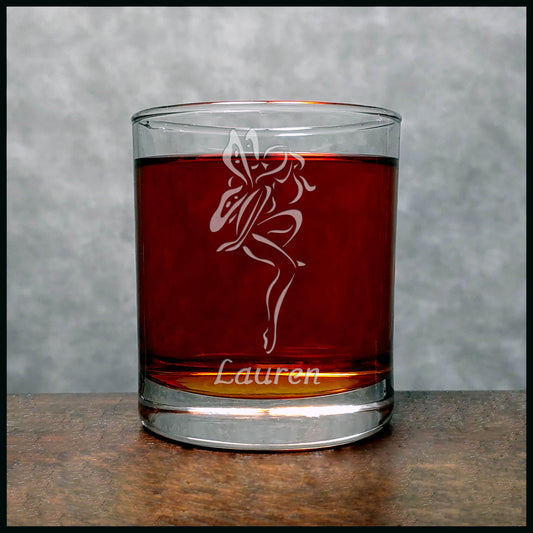 Fairy Engraved 11oz Whiskey Glass - Design 6 - Free Personalization