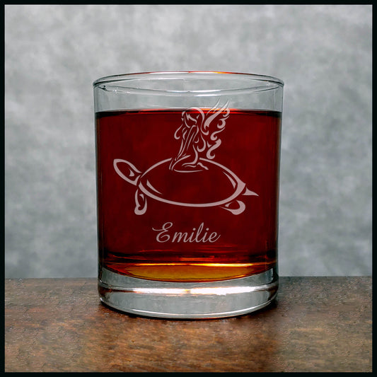 Fairy on a Turtle Engraved 11oz Whiskey Glass - Free Personalization