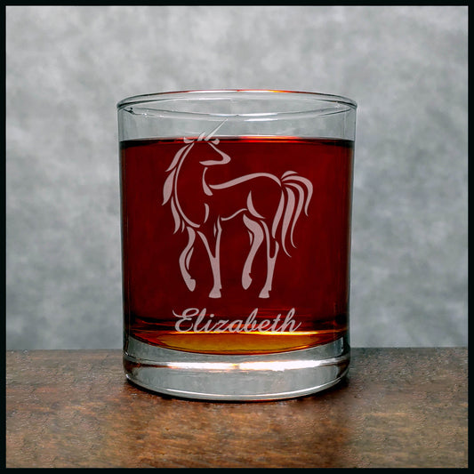 Unicorn Engraved 11oz Whiskey Glass - Deeply Etched Rocks Glass