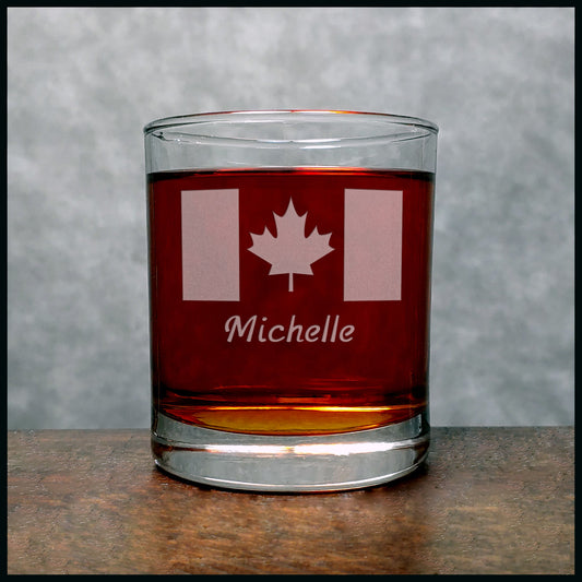 Canada Flag Engraved 11oz Whiskey Glass - Deeply Etched Rocks Glass