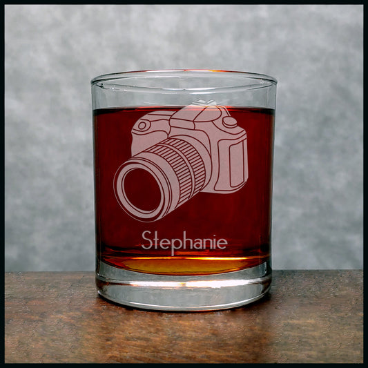 Camera Engraved 11oz Whiskey Glass - Gift for Photographer