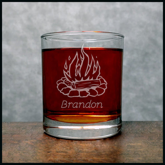 Camp Fire Engraved 11oz Whiskey Glass - Design 2 - Camper Gift