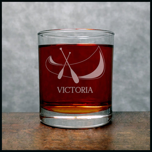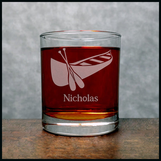 Canoe and Paddle Engraved 11oz Whiskey Glass - Design 2 - Personalized Gift