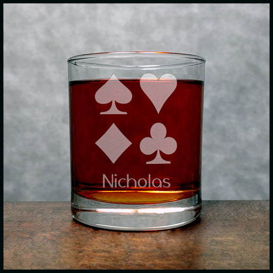 Card Suits Engraved 11oz Whiskey Glass - Personalized Gift