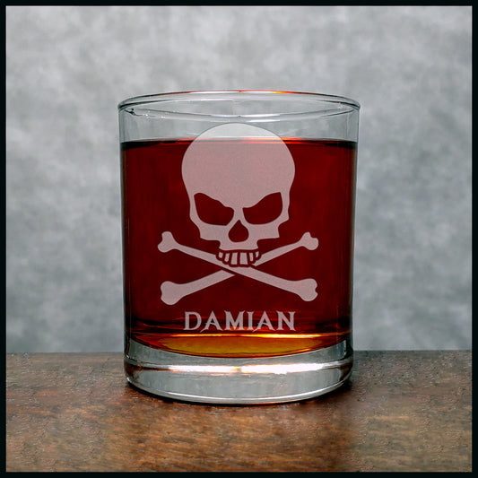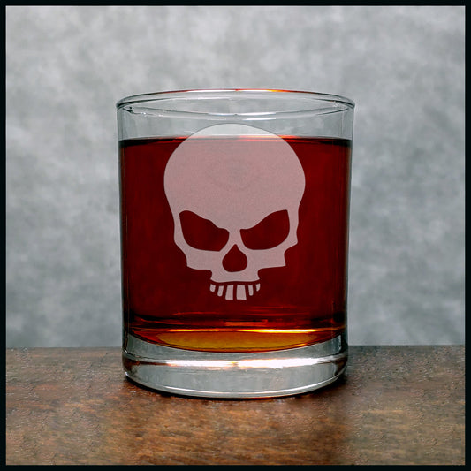 Skull Engraved 11oz Whiskey Glass - Deeply Etched Personalized Gift