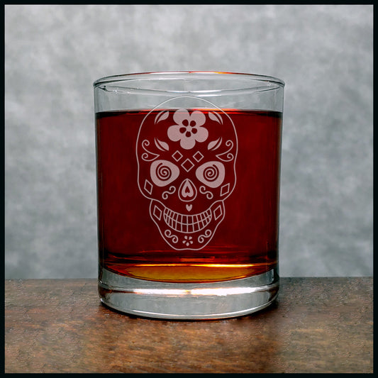 Sugar Skull Engraved 11oz Whiskey Glass - Deeply Etched Rocks Glass