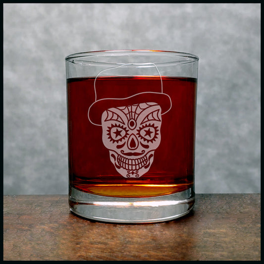 Sugar Skull with Hat Engraved 11oz Whiskey Glass