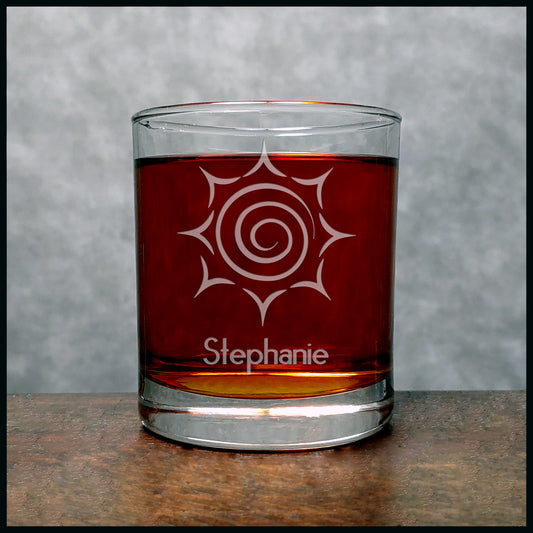 Sun Engraved 11oz Whiskey Glass - Design 3