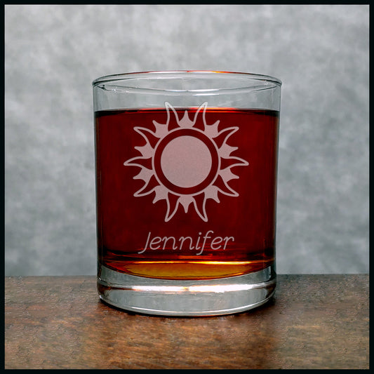Sun Engraved 11oz Whiskey Glass - Design 5 - Free Personalization