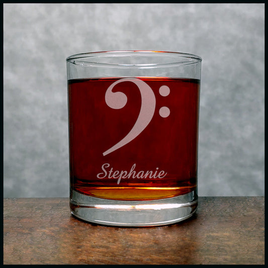 Personalized Bass Clef Engraved 11oz Whiskey Glass – Perfect Gift for Music Teachers & Musicians