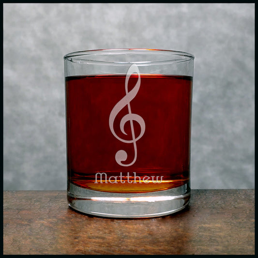 Treble Clef Engraved 11oz Whiskey Glass - Deeply Etched Rocks Glass