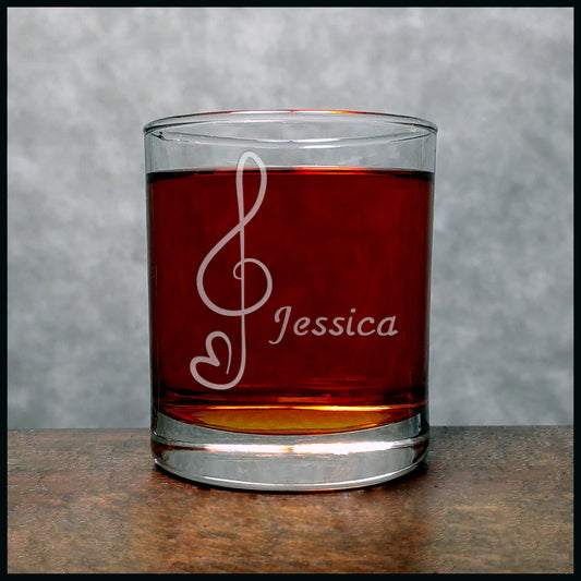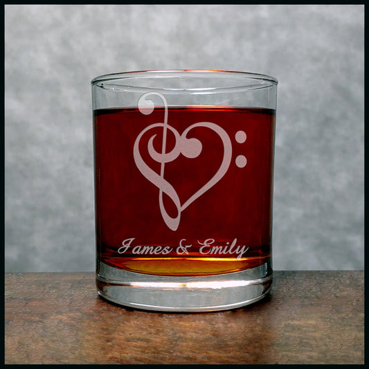 Personalized Treble & Bass Clef Heart Engraved 11oz Whiskey Glass – Custom Music Lover Gift