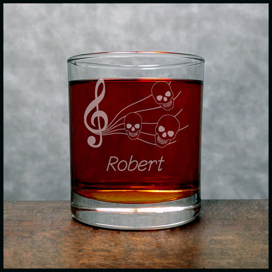 Personalized Music Staff with Skull Notes Etched 11oz Whiskey Glass – Custom Music Lover Gift