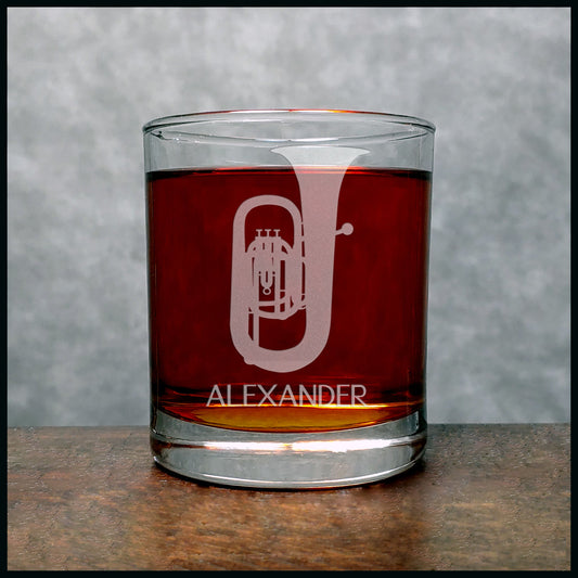 Tuba Engraved 11oz Whiskey Glass - Deeply Etched Rocks Glass