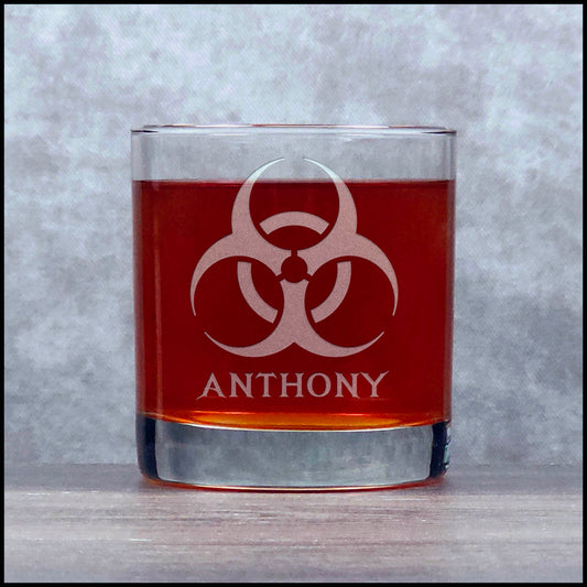 Biohazard Engraved 11oz Whiskey Glass - Science Teacher Gift