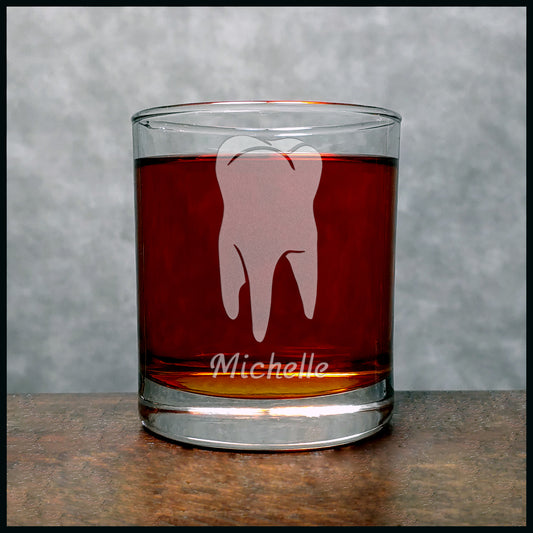 Personalized Dentist Whiskey Glass – Engraved 11oz Tooth Rocks Glass with Custom Etching