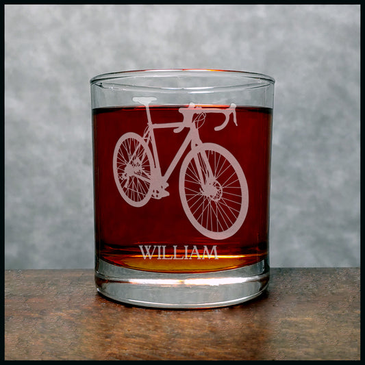 Road Bike Engraved 11oz Whiskey Glass - Deeply Etched Rocks Glass