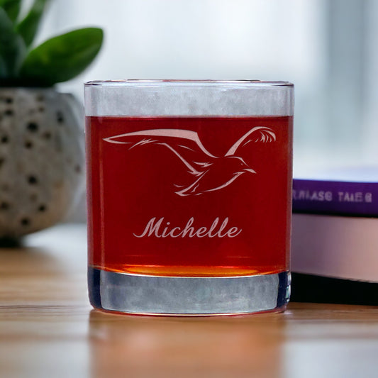 Seagull Engraved 11oz Whiskey Glass - Deeply Etched Rocks Glass