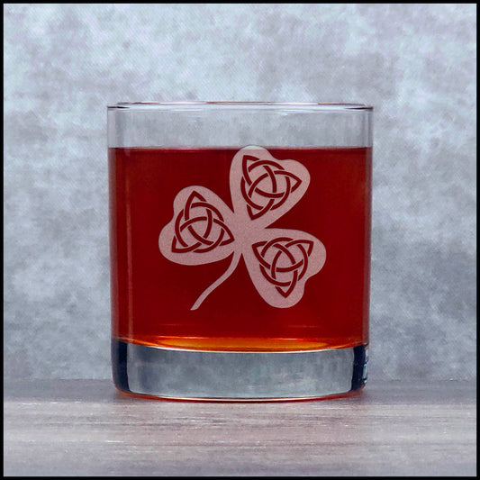 Celtic Shamrock Etched 11oz Whiskey Glass - Deeply Etched Image
