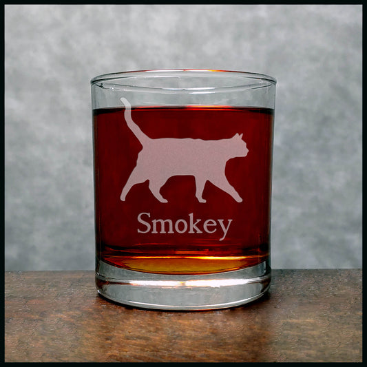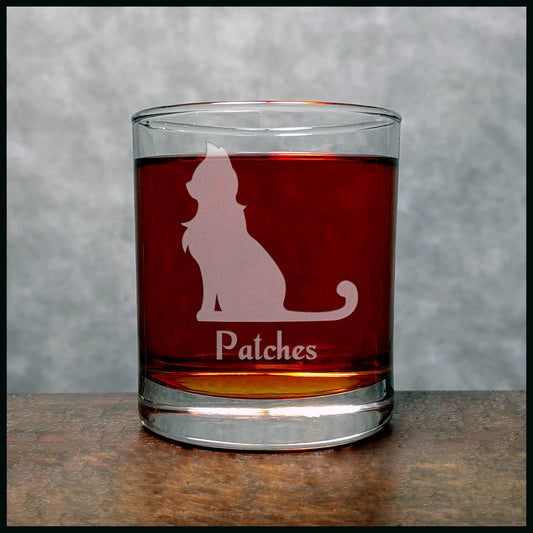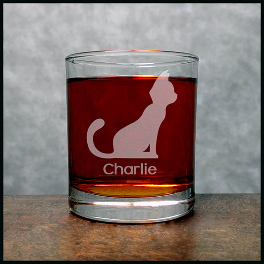 Sitting Cat Engraved 11oz Whiskey Glass - Design 5 - Free Personalization