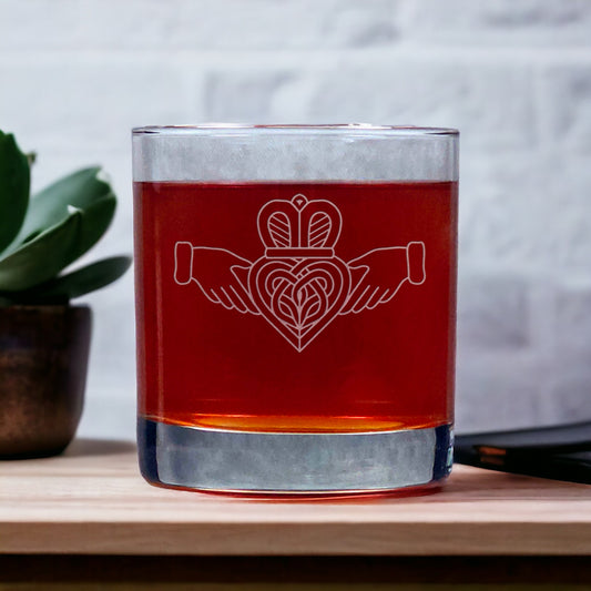Celtic Claddagh Etched 11oz Whiskey Glass – Personalized Wedding Gift for Bride and Groom - Design 1