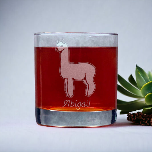 Alpaca Etched 11oz Whiskey Glass - Deeply Etched image that Will Not Fade or Rub Off