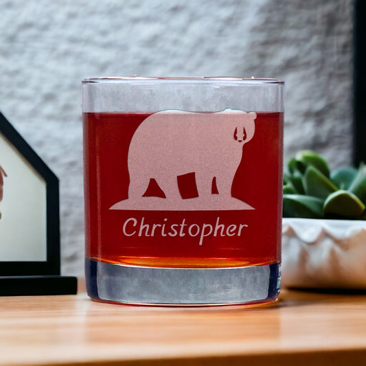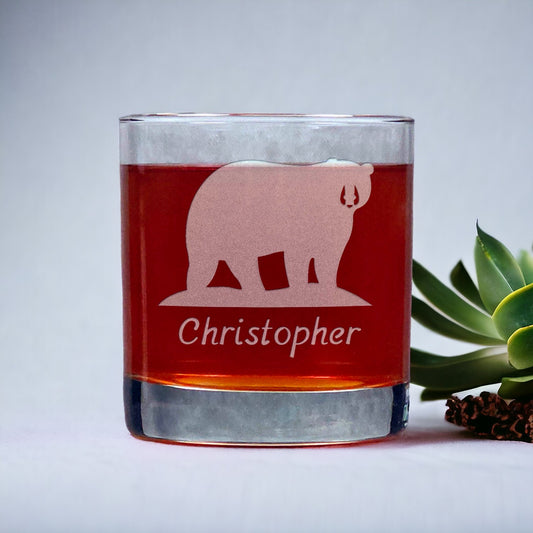 Bear Etched 11oz Whiskey Glass - Personalization Available