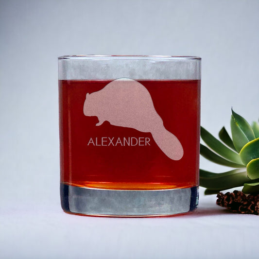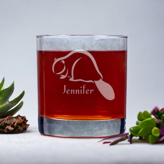 Beaver Etched 11oz Whiskey Glass - Design 3 - Deeply Engravd Rocks Glass
