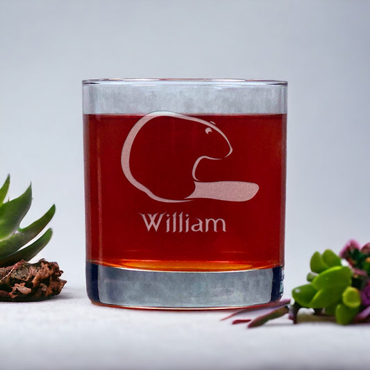 Beaver Etched 11oz Whiskey Glass - Design 2
