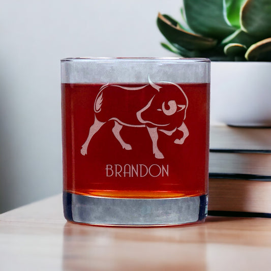 Bull Engraved 11oz Whiskey Glass - Gift for Farmer - Design 2