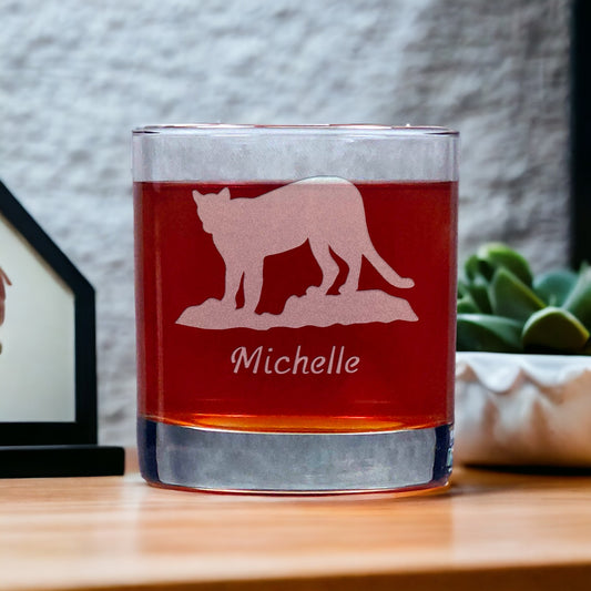 Cougar Etched 11oz Whiskey Glass - Personalized Gift for Animal Lover