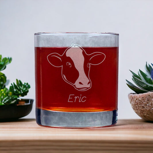 Cow Face Engraved 11oz Whiskey Glass - Gift for Farmers