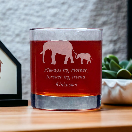 Elephant and Baby Engraved 11oz Whiskey Glass