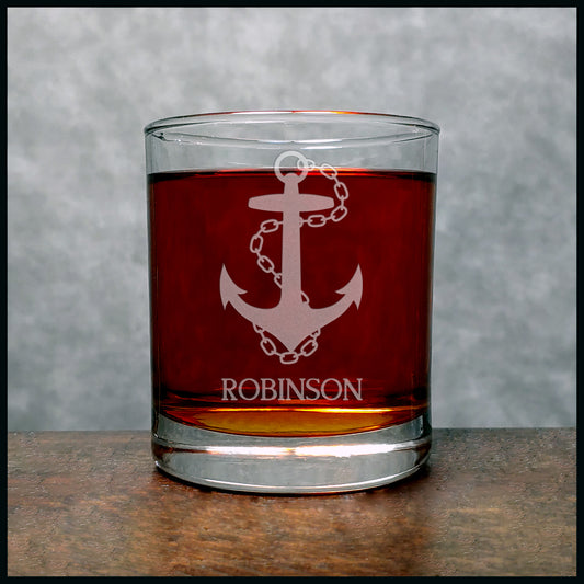 Anchor and Chain Engraved 11oz Whiskey Glass - Personalized Gift