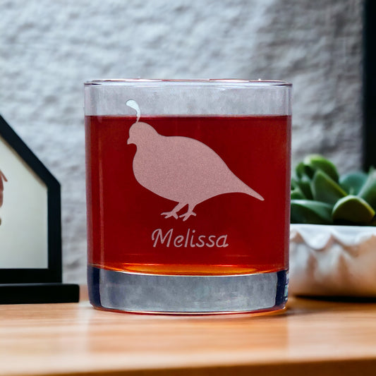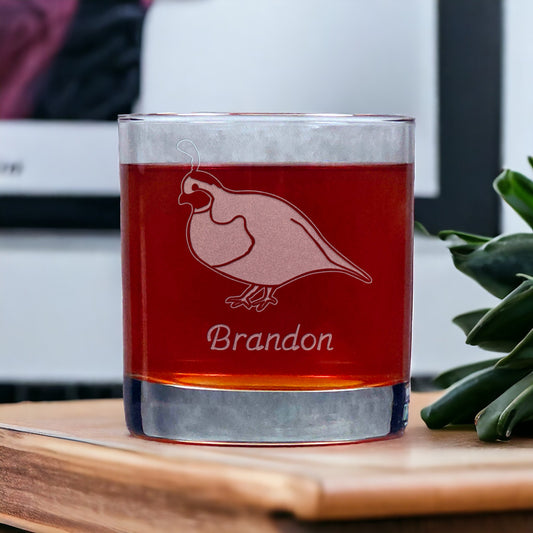 Partridge Engraved 11oz Whiskey Glass - Design 3 - Free Personalization