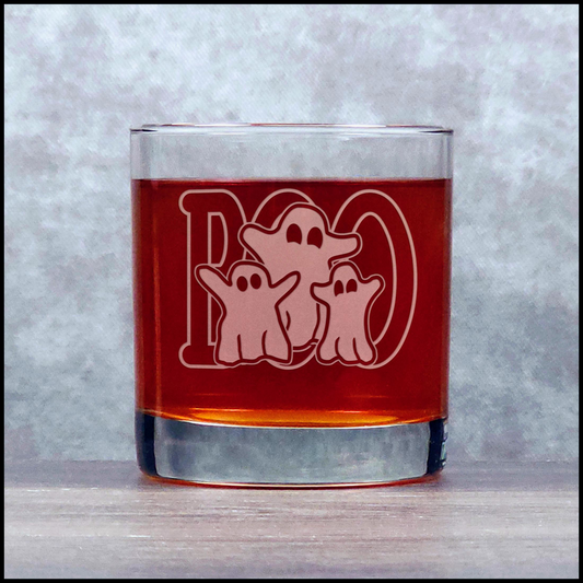 Ghosts Etched 11oz Whiskey Glass – Halloween Barware, Personalized Bourbon, Scotch & Cocktail Glass, Sandblasted Etched Gift for Him or Her