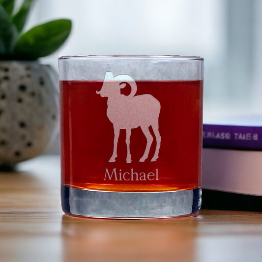Bighorn Sheep 11oz Whiskey Glass - Deeply Etched Rocks Glass - Free Personalization