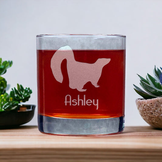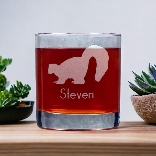 Skunk 11oz Whiskey Glass - Design 2 - Deeply Etched Rocks Glass - Free Personalization