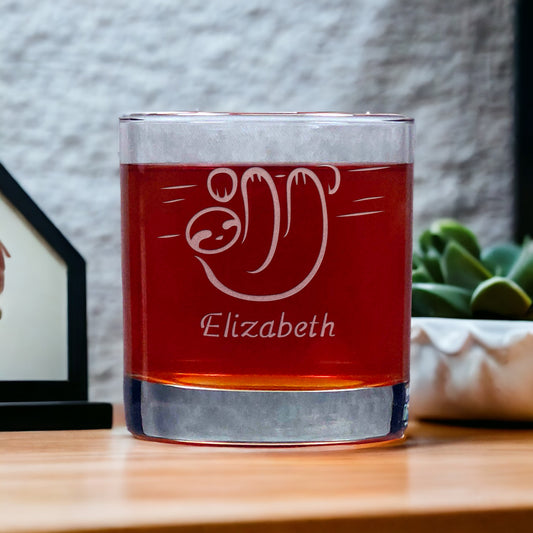 Sloth 11oz Whiskey Glass - Design 1 - Deeply Etched Rocks Glass - Free Personalization
