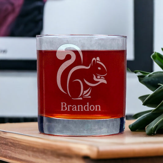 Squirrel 11oz Whiskey Glass - Deeply Etched Rocks Glass - Free Personalization