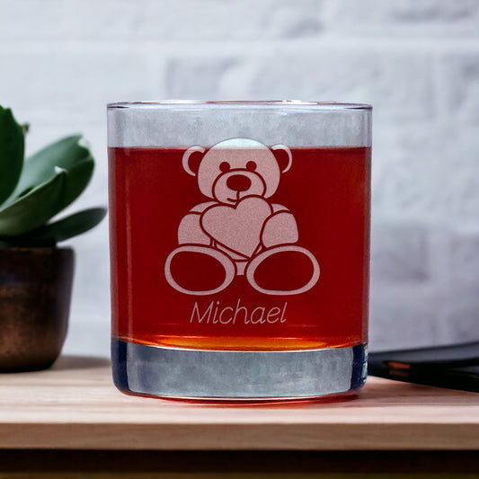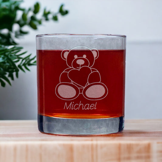 Teddy Bear Etched 11oz Whiskey Glass - Design 1 - Animal Lovers Gift