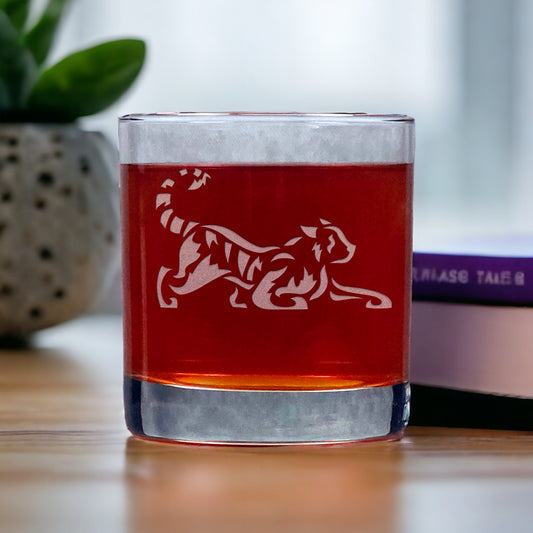 Tiger 11oz Whiskey Glass - Deeply Etched Rocks Glass - Free Personalization