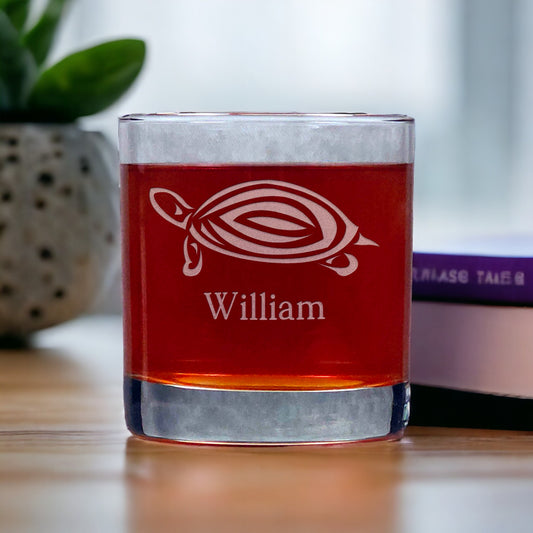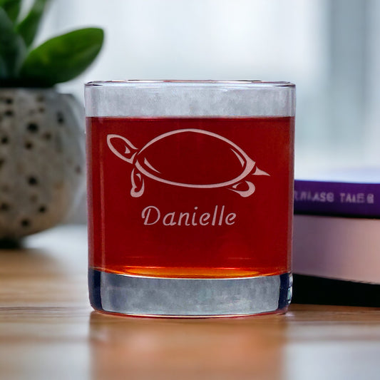 Turtle 11oz Whiskey Glass - Design 3 - Deeply Etched Rocks Glass - Free Personalization