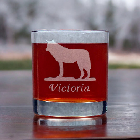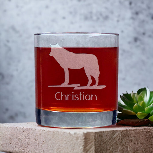 Wolf Engraved 11oz Whiskey Glass - Design 1 - Personalized Etched Rocks Glass