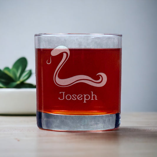 Snake 11oz Whiskey Glass - Design 1 - Deeply Etched Rocks Glass - Free Personalization