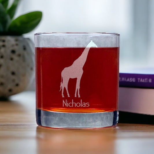 Giraffe Engraved 11oz Whiskey Glass - Deeply Etched - Personalized Gift